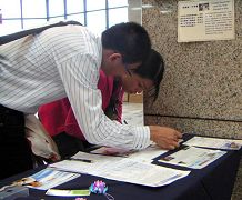 法轮大法社的社团学生除了张贴海报、走访学校每一个行政单位递传单,也利用中午用餐时间于学校湖畔餐厅外摆设展位,并免费赠送法轮功学员自己制作的精美莲花书签。许多同学很高兴的收下,有些则多要了几份带给其他同学。