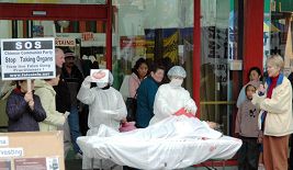 下午的游行是在一处主要街道上进行的,过往车辆很多,许多人打开车窗索要资料,很多司机主动让出路来让游行队伍通过。