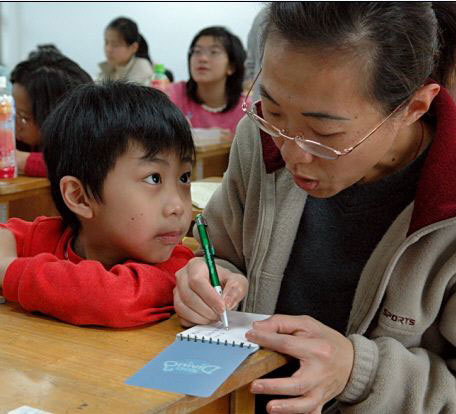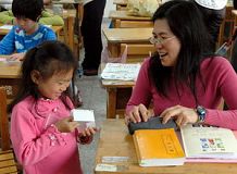 亮延这次要改进的地方是要“少吃零食”。通过学法,他意识到爱吃零食也是一种欲望,一种执著,是应该要修去的。所以当正视这一个执著去修时,很快就有改进。另外,亮延自从学法以后就不看电视、不打电动,漫画也看的少了,有时还督促妈妈要去学法组,遇到问题也跟妈妈一起在法上提高。当然,亮延还需要在功课上多下一点功夫,写字要认真,因为修炼人在哪里都要把事做好。