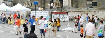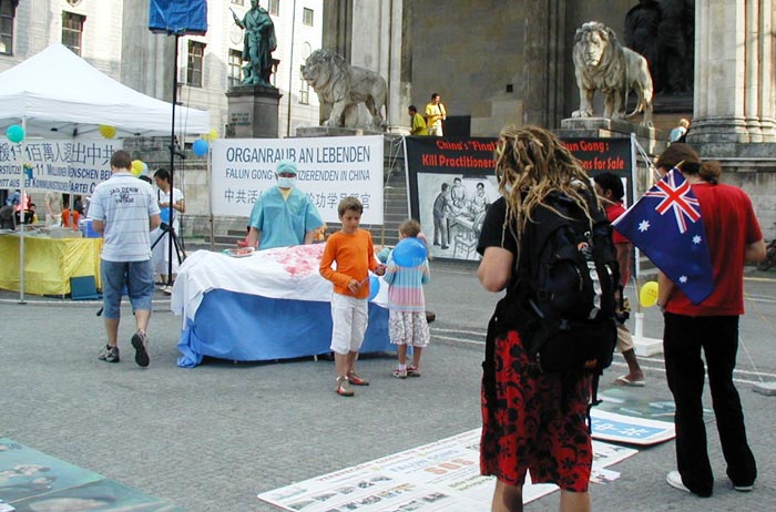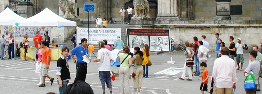 在大.纪.元;义工刚刚摆出展板时就有德国人过来签名制止中共的恶行,不少德国人表示已经看过有关的资料。有些人认为现在的人很麻木,只是为了私人的利益,包括政府在内都是这样,这种现象必须改变。