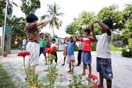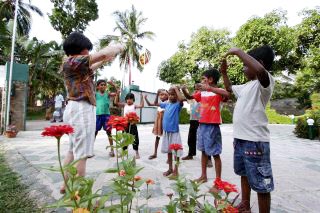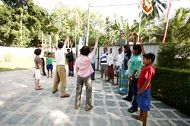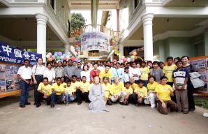 次日一早,台湾学员在入宿旅馆的外院炼功,吸引了一群住在附近民众围观。这里的民风纯朴善良,每个人都打赤脚,其生活水平与40几年前的台湾相若。有学员招呼他们到院子来,并表示可教他们功法;先是几名小孩进来,稍后几名男士进来,而女士们依然站在门口观看。