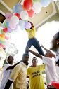法会当天,布置会场,虽然这里资源短缺,不过,学员还是克服了重重困难,齐心完成许多常人看来根本不可能的任务。台湾学员带去了许多气球,因无打气工具,于是与当地学员一起把气球一个个吹起来。而高处的布置,因找不到梯子,于是当地学员以叠罗汉的方式来完成。后又因找不到塑胶管当支架做气球拱门,当地学员就地取材,就在会场旁的竹丛砍下一根竹子,劈成四片,用麻绳捆绑后系上气球五彩缤纷的拱门就此形成。