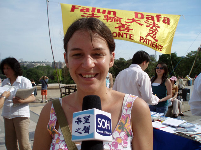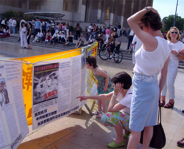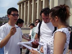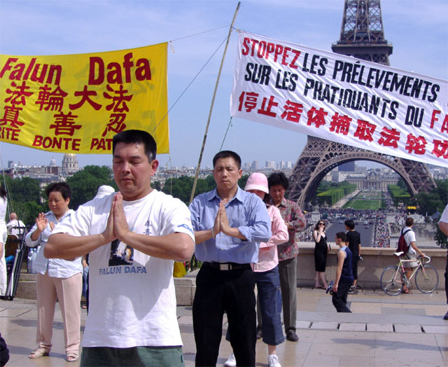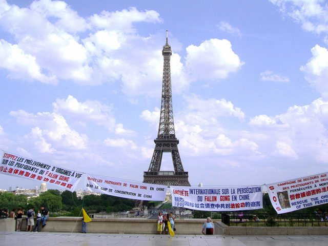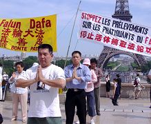 连续7年,法轮功学员以和平方式在巴黎人权广场揭露、抗议中共对法轮功学员的迫害罪行。法轮功学员成法表示:“我们坚持了7年,就是要把人们的良知唤回来。这也是一个机会,让人们明白法轮大法是中国古老传统文化的精华,能使人心向善、能救度世人。”