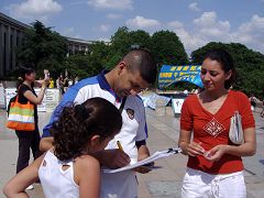 一位名叫克里斯谭•古博的男孩看到展板上中共对法轮功的迫害后,他签了名支持法轮功,他说:“这真是太恐怖了,(中共)对人类犯下这样的罪行,是天理不容的。我受到了非常巨大的震动,非常巨大。”
