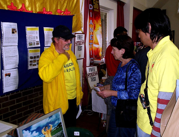 每次展会都有有缘人因此知道了法轮大法,从而了解在中国发生的对法轮功的迫害。一位观众在上次参展时得到了我们的宣传单,她被其中的内容深深吸引,此次特来了解更多,并表示要到炼功点上炼功。