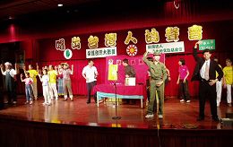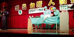 大陆法轮功学员被活体摘取器官贩售一事,已在台湾社会渐渐传扬开来。一个夏日的周末夜晚,“唱出台湾人的声音”音乐会在台中市文化中心演艺厅上演。这场音乐会是由海洋之声与大地文教基金会主办,欢乐声中结合了艺术与心灵的飨宴,让人回味早期台湾人民的纯朴与善良,参加演出的团体不论老少都博得了满堂的喝彩。一个告诉人们大陆法轮功学员受迫害真相的行动剧,更深深聚焦了观众的目光。