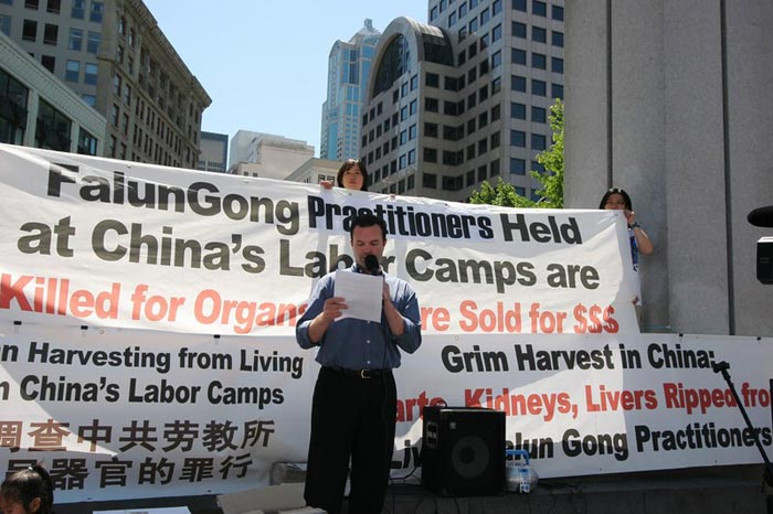 Jerke先生作为法轮功学员代表发言。他指出,与中国做生意的国际社会,在知悉中共残酷迫害人权的情况下,为了他们的经济利益,选择保持沉默。但正是这种沉默,“使得这样的迫害得以继续。”