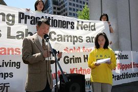 首先Green先生代表“追.查!国际”组织发言。Green先生说:“追.查!国际”的目标就是调查法轮功在中国受迫害的情况和维护法轮功修炼者们在中国最基本的人权。为什么修炼“真善忍”的和平的法轮功在中国会被列为非法?Green 先生说,正是因为法轮功修炼的美好,从1992年开传,短短的7年里在中国吸引了1亿人修炼,这个数目远远超出6千万中共党员的数目。信奉“假恶暴”的中共无法容忍“真善忍”,自认为政权受到了所谓的威胁,因此发起对法轮功的残酷迫害。