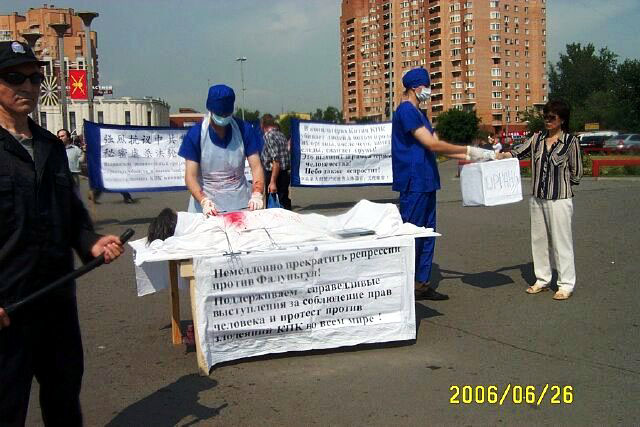 活动虽被安排在下午3-6点的工作时间,很多学员还是克服困难积极参与。展板、横幅及模拟活体摘取器官演示,大家配合默契,有的布置现场,有的抓紧给过往的民众发资料讲真相。