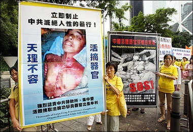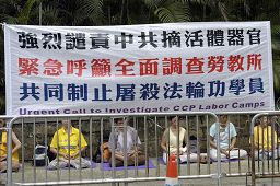 ![]() 法轮功学员游行 | ![]() 活摘器官 天理不容(法新社图片) |