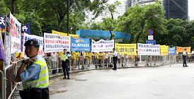 ![]() 法轮功学员在终审法院侧举行抗议活动 |