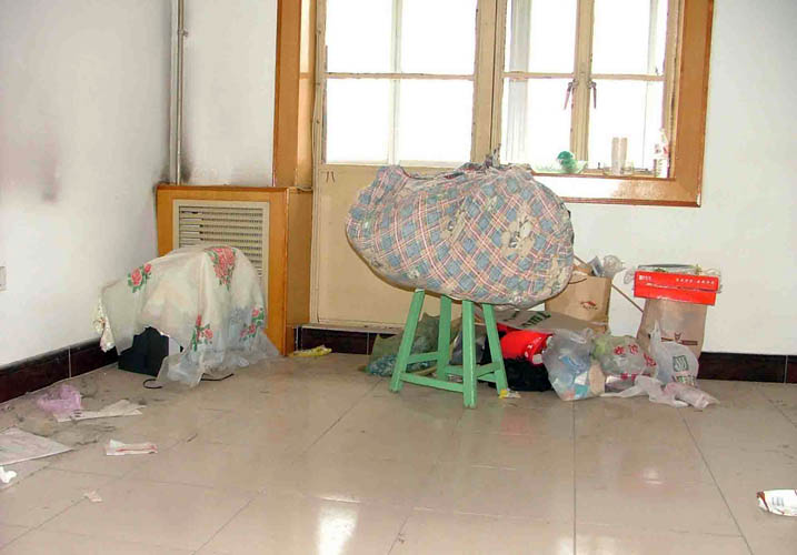 ![]() 人去楼空,只有照片孤零零挂在墙上 | ![]() 空调和家具被搬走,一片狼藉 |
