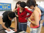 ![]() 学生们签名声援法轮功,呼吁制止中共暴行 | ![]() 教授签名声援法轮功反迫害 | ![]() 学校的教职员工阅读真相资料并签名声援法轮功 |