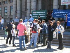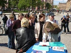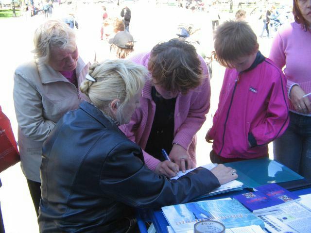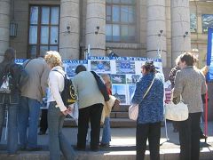 ![]() 学员和民众交谈,介绍更多的真相 | ![]() 认真阅读揭露中共残酷迫害法轮功的真相资料 |