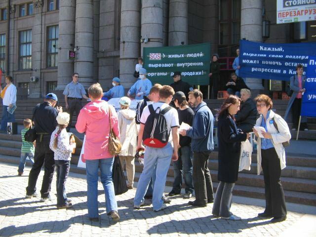 人们纷纷停下脚步倾听着,看着眼前这血淋淋活体摘取器官的演示,很多人带着迷惑和震惊的神情问:“这是真的吗?在中国竟能发生这样的事儿?”针对群众的疑问,很多学员面对面向人们進一步讲清真相,随着交流,一些原本冷漠的心受到了触动。
