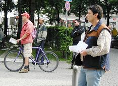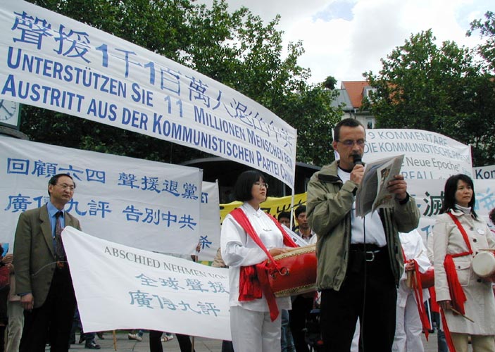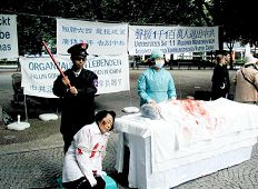 在游行的终点东火车站广场,举办了揭露中共迫害法轮功学员的反酷刑展、活体摘取器官的真人模拟表演。中共的兽性令人发指,德国民众纷纷签名表示谴责。教师莱昂哈特(Leonhard)表示反对共产主义体系,反对任何形式的秘密关押、特别是集中营,她认为一切都必须公开化。