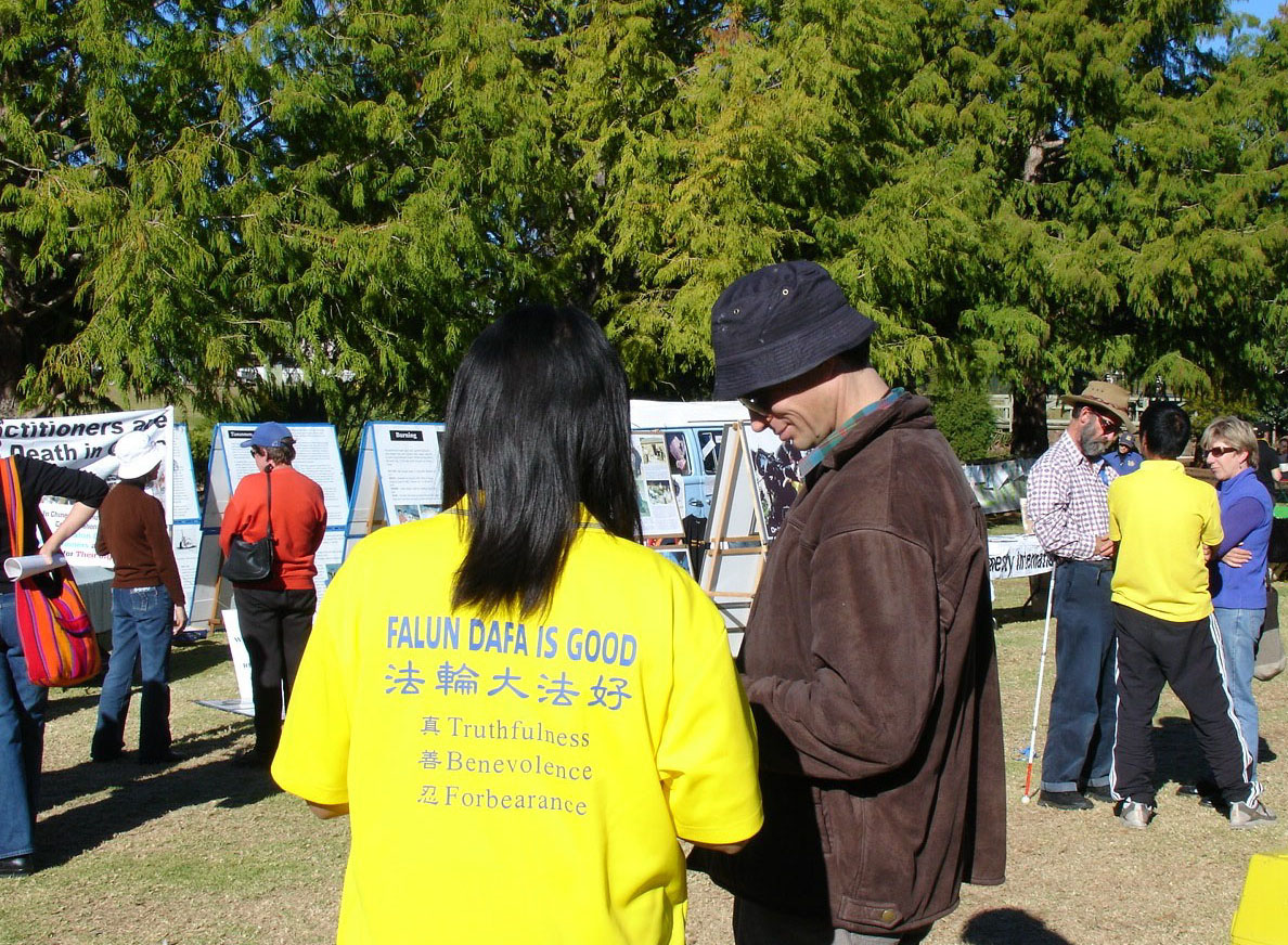 法轮功学员还应邀上台发言,進一步向民众介绍了什么是法轮功及中共对法轮功的迫害,同时呼吁澳洲政府、媒体和广大澳洲人民站在良知道义一边,协助早日结束这场人类浩劫。