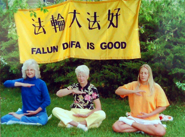 ![]() 法轮功学员一家三代炼功照获荣誉奖 | ![]() 道蒂女士、女儿、外孙女正在炼法轮功 |