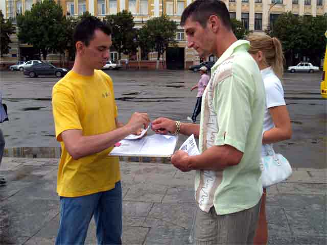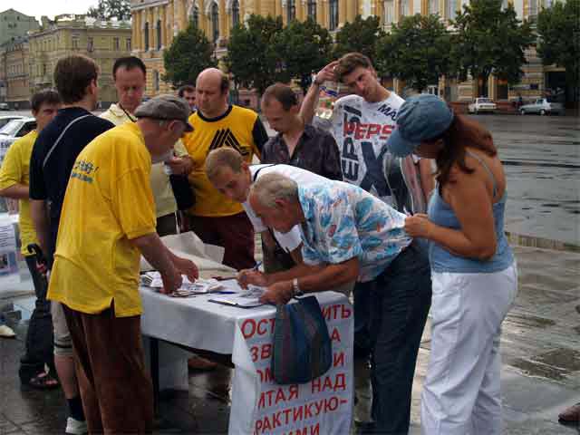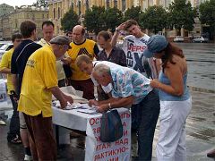 活动在哈尔科夫市民中引起了很大反响,很多人在“呼吁乌克兰政府支持对中共非法关押法轮功学员的监狱、劳教所及死亡集中营進行调查”的公开信上签了名。有几位年轻人为了不影响其他人签名,主动拿了表格到旁边签了字后送了回来。