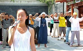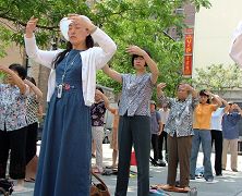 ![]() CBC加拿大国家电台、电视台采访法轮功学员 | ![]() 法轮功学员祥和的炼功场面 |