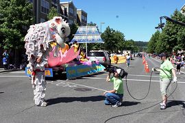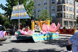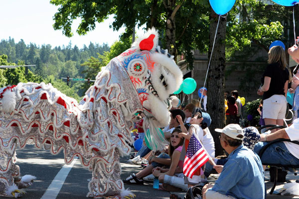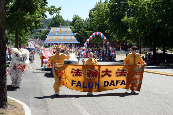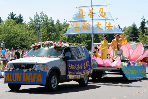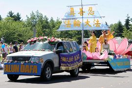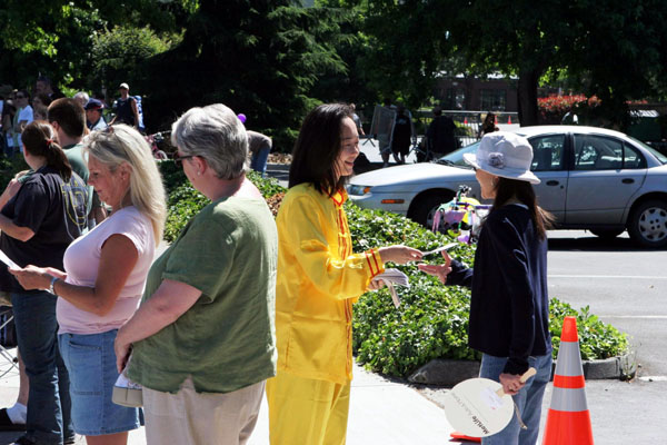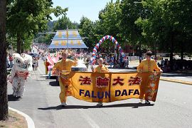【明慧网2006年7月15日】2006年7月8日,部份美国华盛顿州法轮功学员来到瑞得蒙得市(Redmond)参加当地的游行活动。瑞得蒙得是微软公司所在地,众多观众都是该公司的员工和家属,包括许多中国人。观众们频频向法轮功学员招手致意。当地电视台对游行进行了转播。