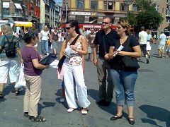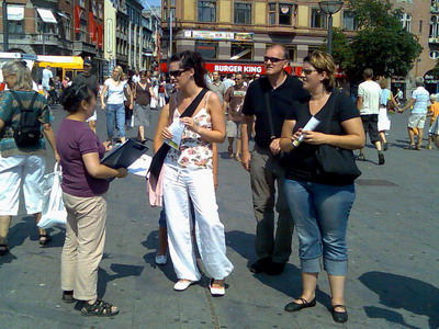 不时会有大陆游客到来,有人震惊,有人已经在其它国家见到过同样的场面,有人会悄悄拍下这一幕场景,带回中国。W同修不时停下炼功,向站在真相图片前的游客介绍大法洪传世界与中共残酷迫害法轮功修炼者的真相。同时,法轮功学员们一起向可贵的大陆同胞发送《·九·评*》和真相资料,并用智慧和善心与他们沟通,交谈,讲真相,劝三:退.。就这样,学员们开始了周末高密度的洪法、讲真相与修炼的集体活动。