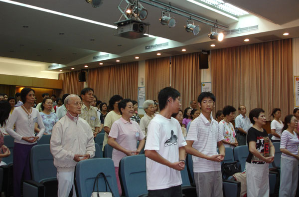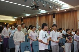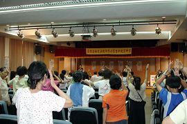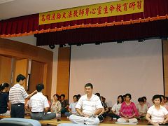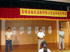 7月8日最后半天,由中兴大学学务长刘正义教授分享《身心灵健康DIY》,刘教授累积多年演讲经验,做出完整的一套Power Point简报,从医学专业立场,深入浅出分析人致病的因素以及现代医疗的瓶颈,他列举多项数据和实例,说明另类替代疗法─身心医学的效用,从而引出法轮功修炼对人体基因、血液各方面的超常影响。刘教授在严谨的分析中,以诙谐的语调逐步引导,令听讲者浑然不觉时间的流逝,直到最后延长的十多分钟,学校电力供输系统故障跳电,他才气定神闲的作出总结,为四天半的研习活动,划下圆满句点。