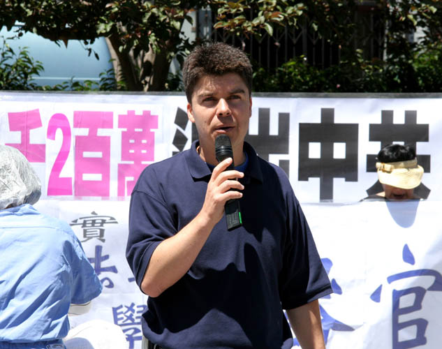 中国大赦主席沈默表示,今天在这里集会抗议中共七年来对法轮功学员的迫害,以及声援1千2百万人退出邪恶的中共组织。