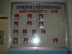 ![]() 入外科病房楼,一楼右侧墙面悬挂的泌尿外科医生护士一览表 |