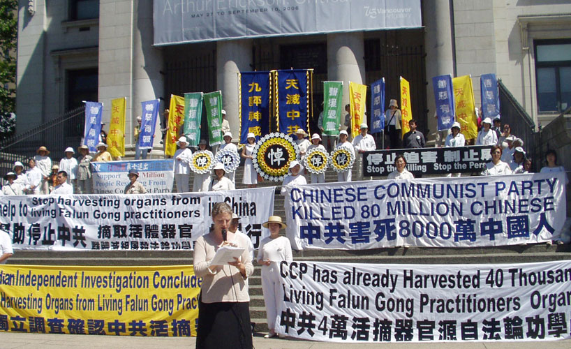 卑诗省总工会代表菲莱德‧穆珍(Fred Muzin)先生,代表属下1100个工会47万职工在集会发言。他表示对杀戮人类、摘除人体器官以谋取暴利这样的罪行,我们绝对不能沉默。总工会一直在为各种人权呼吁,今天要与法轮功学员站在一起,呼吁加拿大政府不能让贸易凌驾于人权道义之上,同时了解任何器官移植的来源,制止活体摘取器官罪恶的发生。穆珍先生赞赏法轮功学员的勇气以及为正义尊严不懈的努力。