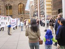 ![]() 法轮功学员揭露中共罪行,吁制止迫害 | ![]() 路人关注了解真相 |