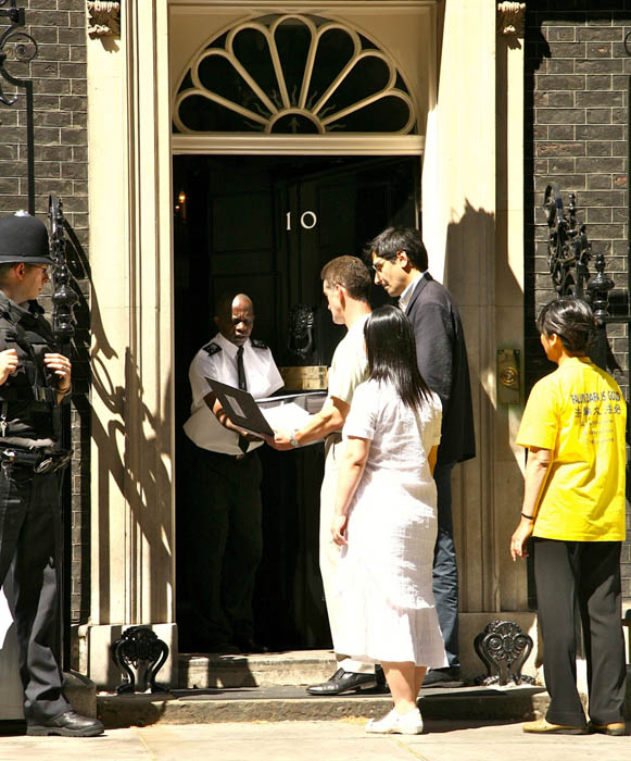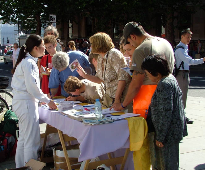 游行结束后,法轮功学员把要求英国政府就中共对法轮功学员器官的活体摘取进行调查的请愿信递交给了英国首相府,并在伦敦的多个地点举行了洪法活动,以让更多的民众了解这场迫害,并共同制止中共的邪恶暴行。许多英国民众了解到迫害事实后,纷纷表达他们对中共的愤怒和对法轮功学员的支持,签名桌前时常挤满签名的民众。不少人向学员表示,应该让更多的人了解到这场迫害的真相,这样迫害不会再持续多久了。