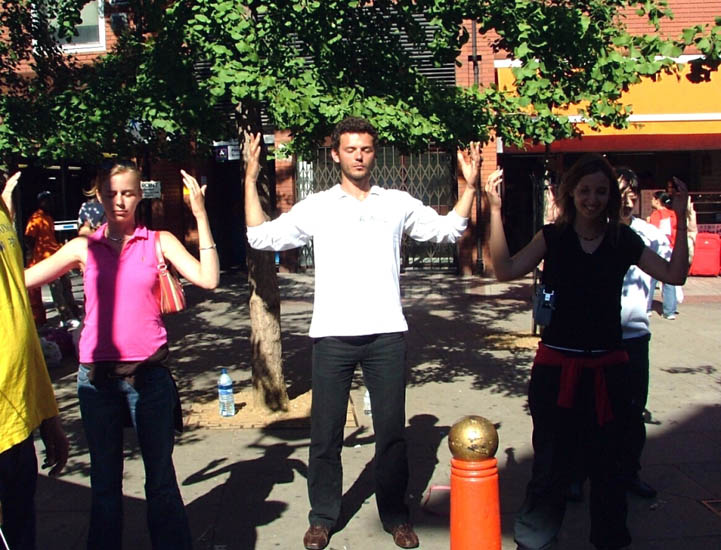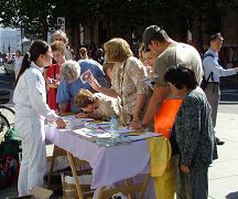 ![]() 法轮功功法演示 | ![]() 签名桌前挤满了解真相的民众 |