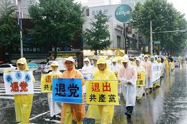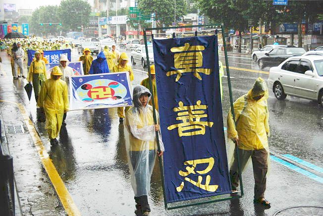 【明慧网2006年7月18日】2006年7月15日,韩国法轮功学员汇集首都奥林匹克酒店举行了修炼心得交流会,并于16日冒雨举行反