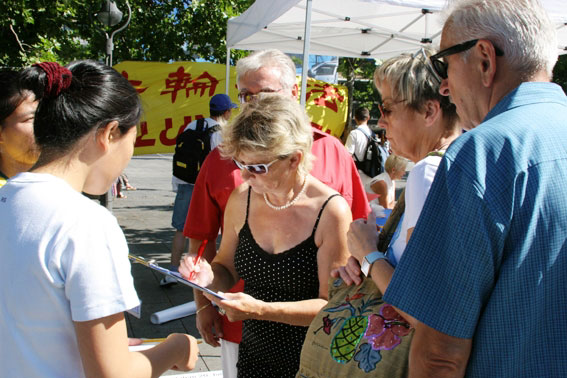 民众了解真相民众签名呼吁德国政府及国际社会伸出援手,共同制止中共对法轮功的迫害