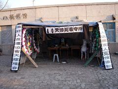 家人亡故,亲人守灵祭拜,这是我们中国人自古至今的传统习俗。王建国不明不白的冤死,家属伸冤无门,在自家院中设灵棚祭拜,以慰王建国在天之灵,挂的挽联左联是“白发人送黑发人冤情谁知”、右联是“做好人反遭迫害天理难容”、横联是“40天惨死看守所”。