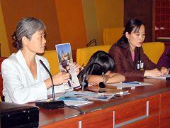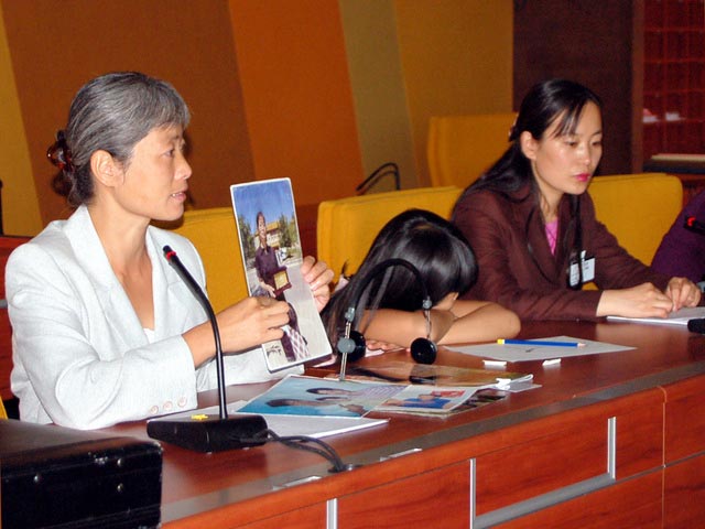 ![]() 国际人权无疆界组织代表艾丽丝•斯的亚特女士(Ms. Elise Steyaert)宣读声明 |