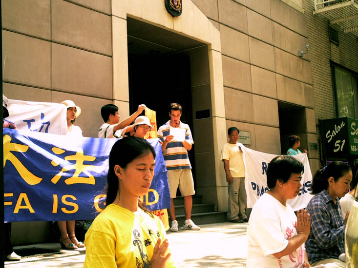 ![]() 法轮功学员在新加坡驻联合国代表团驻地严正抗议 |