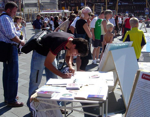 在美丽的童话王国丹麦,在法轮功过去被中共迫害的七年里,依然吸引了众多寻求真理的有缘人,人们顶着巨大的压力,走近大法,走进修炼。修炼者的队伍在迫害中日益壮大。弟子们凭着慈悲胸怀,历经风雨,克服重重困难,不懈的向世人讲清真相,使越来越多的世人从迷惑中醒悟,还大法以公正。