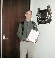 ![]() 法轮功学员朱诺代表美西法轮功学员递交请愿信 |