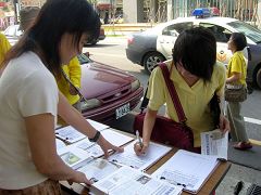 ,2006年7月20日, 台湾苗栗法轮功学员举办活动,揭露中共暴行,呼吁社会各界共同努力制止这场浩劫。
