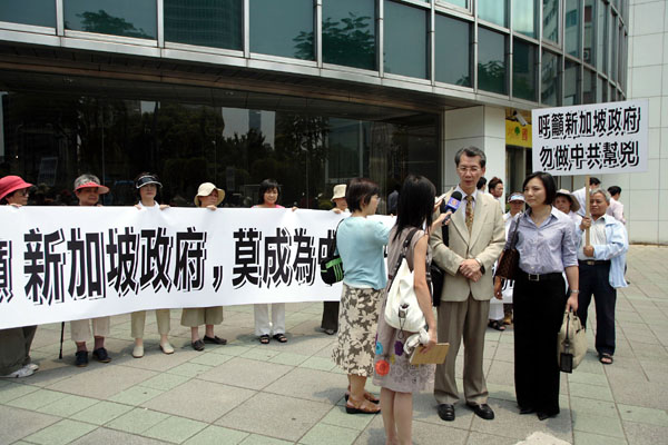 他表示,从今年6月份开始,新加坡接连发生吊销法轮功学员工作许可、强令离境甚至对多名派发真相资料的法轮功学员进行控罪的不公事件。所以我们非常担心这9名法轮功学员的安危跟未来的处境,如果新加坡政府枉顾道义,将他们送回中国大陆,这些学员会面临拘捕、监禁甚至死亡,因此我们非常关切这件事情,要求立即撤销控诉。