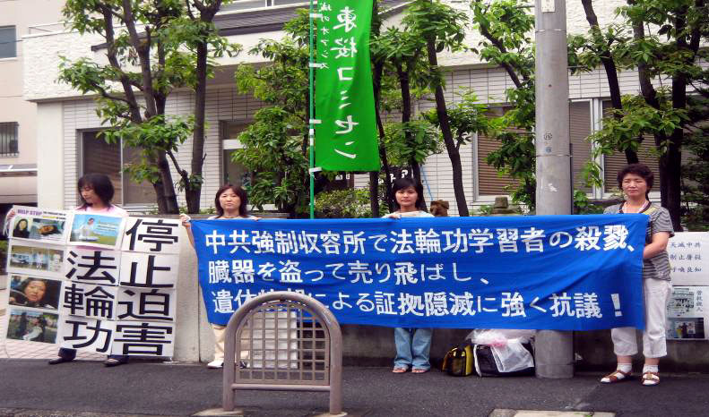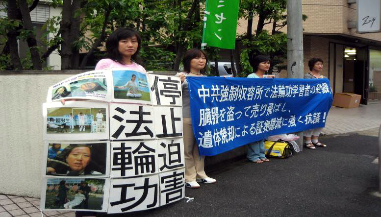 日本大阪法轮功学员中领馆前绝食抗议中共暴行(图)