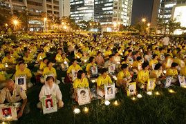 ![]() 民众了解活摘器官的真相 | ![]() 游客学炼法轮功 |
