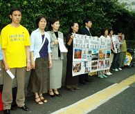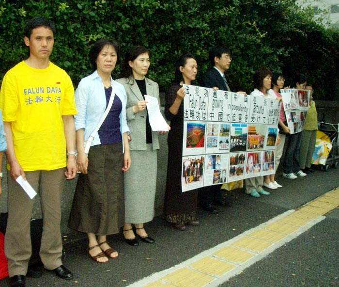 7月20日也是亚洲11个国家和地区的法轮功学员同步绝食的一天。在东京中国大使馆前,自从7年前的迫害开始,上班时间天天有法轮功学员前往那里和平抗议,打横幅,谴责中共邪恶暴行。一些开始秉承江泽民、罗干旨意、参与迫害的中使馆人员,最终也为法轮功学员长年累月的坚持而受到震动、思考。