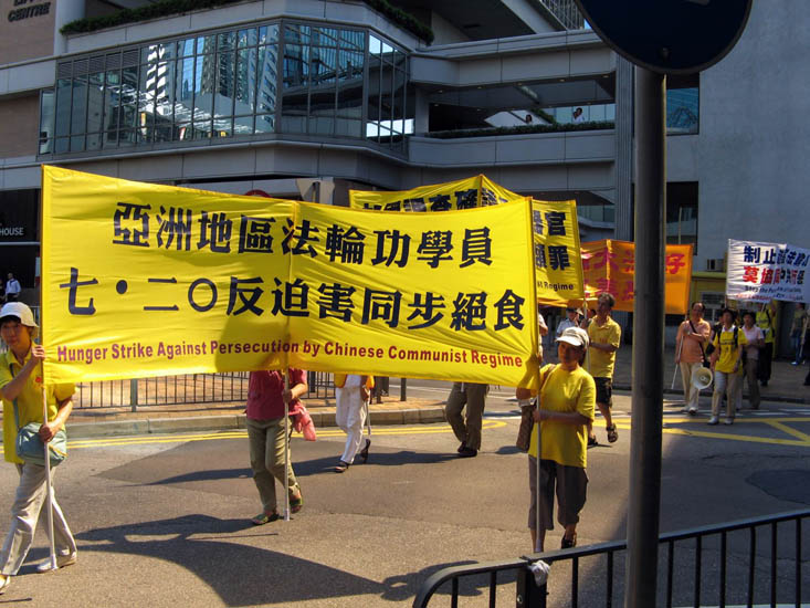 ![]() 香港法轮功学员从中环遮打花园游行至位于金钟的新加坡领事馆 |