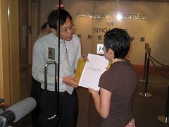 香港法轮功学员表示“以道义、良知为重,撤销对法轮功学员的指控,不要再讨好中共,这样新加坡才会有一个光明的未来。”