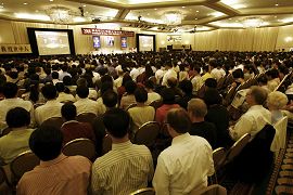 【明慧网二零零六年七月二十二日】(明慧记者郑海山华府报导)一年一度的美国华盛顿DC法轮大法修炼心得交流会,于2006年7月22日星期六,在华府Omni Shoreham酒店隆重召开。约4000名法轮功学员参加了此次盛会。上午10点40分,慈悲伟大的师尊亲临会场,全场掌声雷动。师尊给弟子们讲法35分钟,弟子们听法后对法轮大法的修炼形式等问题有了更好的领悟。
