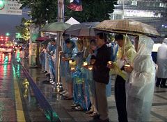 ![]() 7月20日晚,法轮功学员在新加坡驻韩大使馆门前举行烛光守夜活动 |