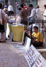 步行街上,在购物间隙或者等待游行队伍的空闲里,人们有机会看到了法轮功学员在这里举办的有关中国人权状况的信息展。人们通过与当地法轮功学员的交流,看有关法轮功被迫害的相关图片、照片和真人酷刑展,并且读过真相传单后,充分的了解到了法轮功这一祥和的气功修炼在中国所遭受到的令人发指的迫害。人们纷纷在反迫害的呼吁信上签字,有些跟学员做了长久的交流,了解了详细的信息。在这个喧闹的城市,中共对于活生生的人的迫害的真相象一股凉风一样让人们惊醒。